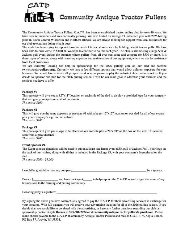 Want to become a sponsor? Check out the sponsor letter below and send it with whatever